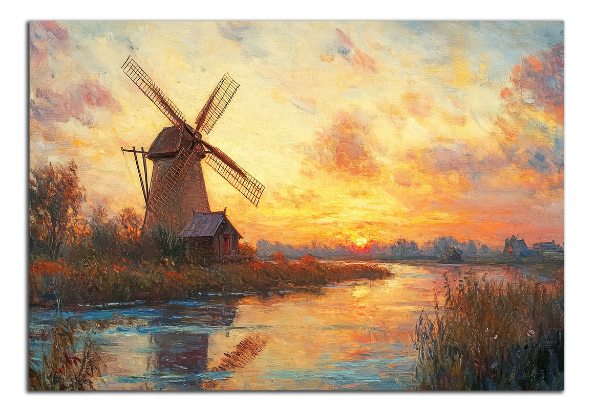 Veterný mlyn pri rieke